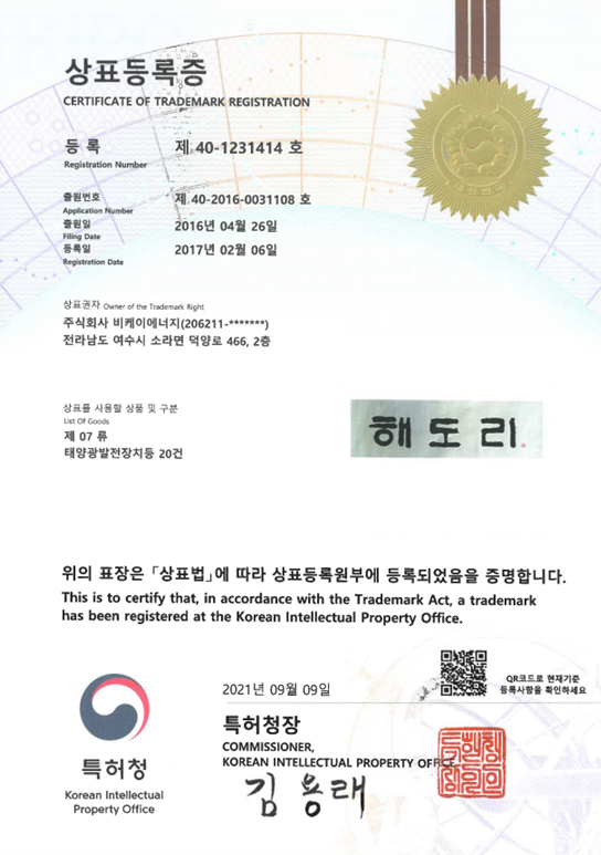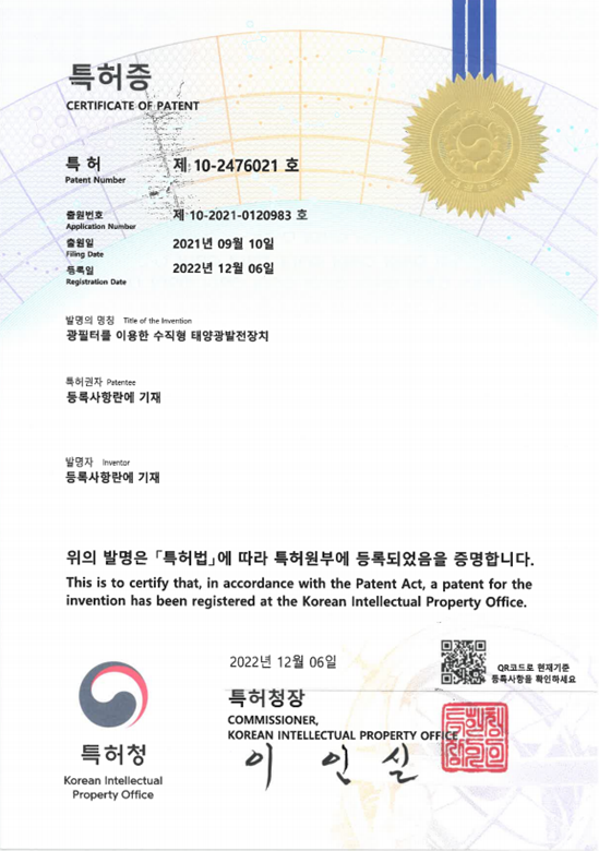 Patent No. 10-2476021